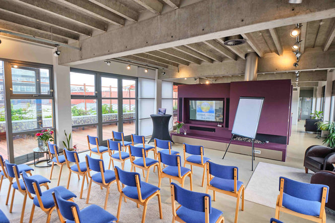 The loft offers a versatile setting for your creative endeavors and celebrations. A perfect room for brainstorm sessions, workshops, business meetings or birthday parties. It consists out of a lounge, kitchen en private terrace.